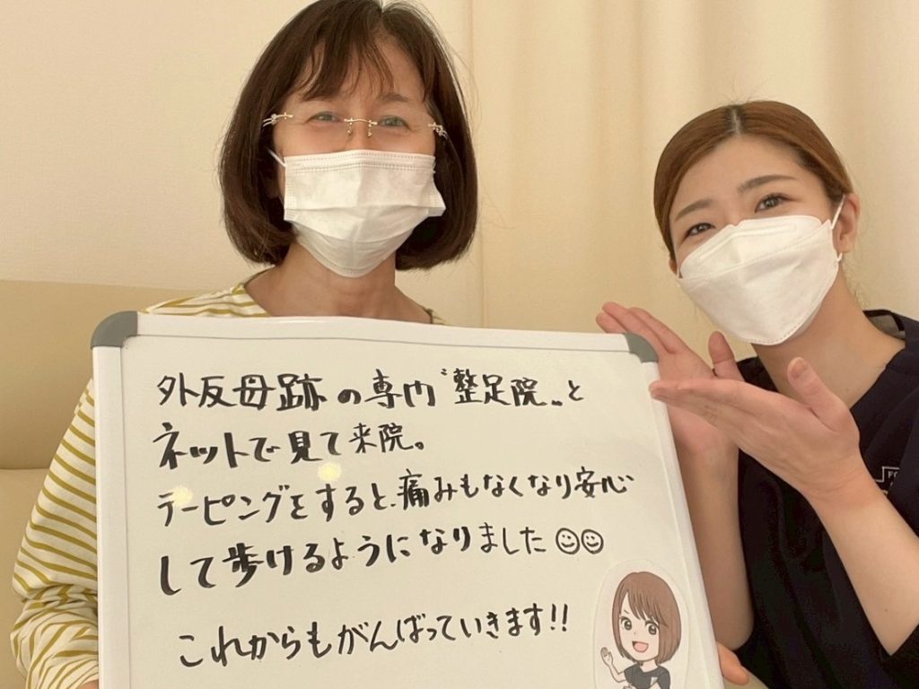 年齢とともに徐々に外反母趾が悪化し、見るからに出っぱってきていましたし、太いヒールでも痛みで辛くなってきたので、まずは足を専門としている整形外科クリニックを受けました。レントゲンを撮って骨の状態をみて、インソールの提案を受けましたが、もし手術してもインソールはずっと使い続けると聞き、期待していた方向性と違っていたので困っていた矢先に整足院さんと出会いました。