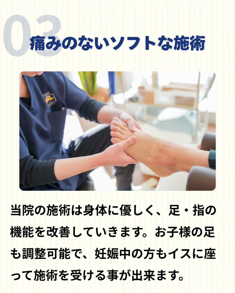 丁寧な施術で足を正しい状態に整えることで、将来もずっと「自分の足で歩ける安心」を育てていけます。